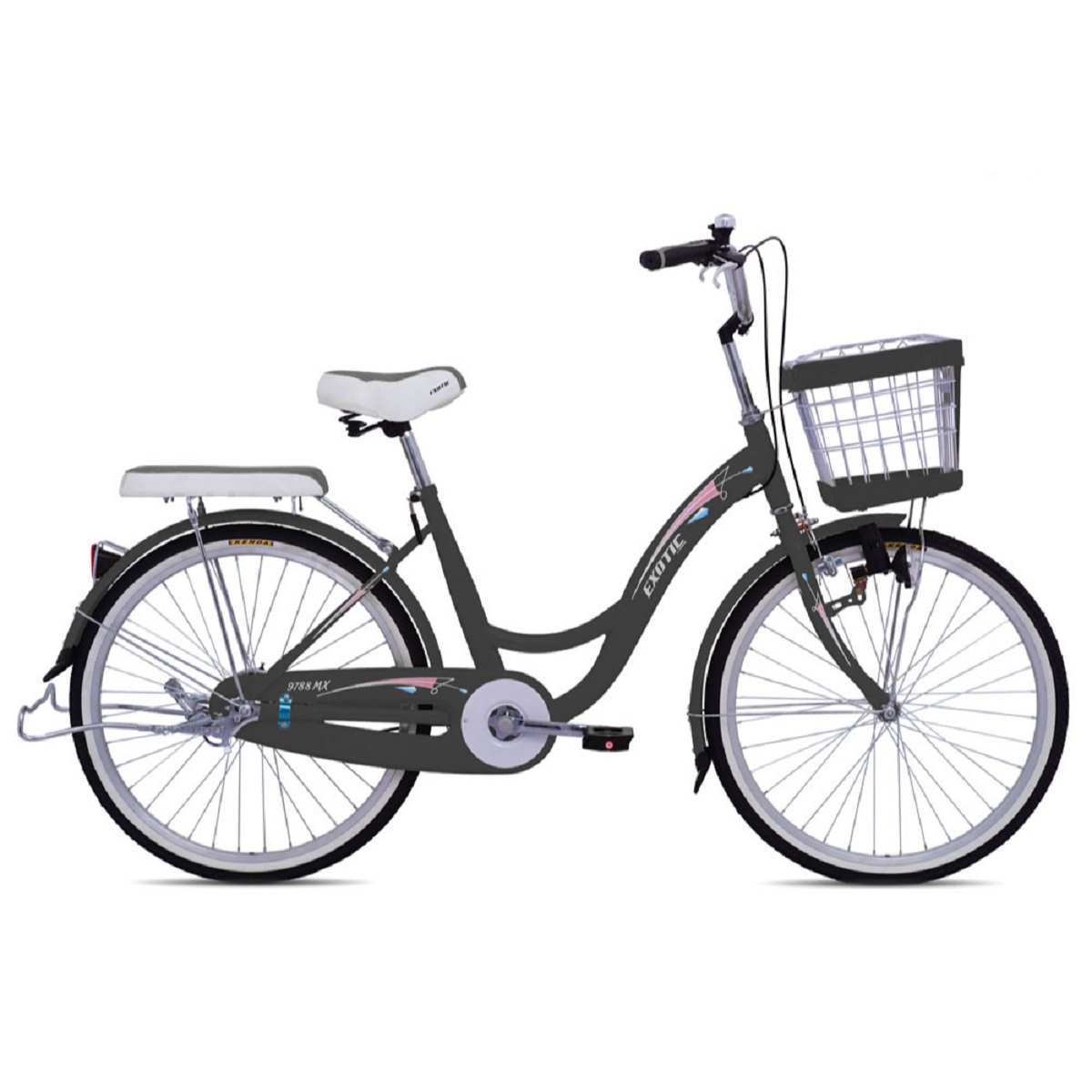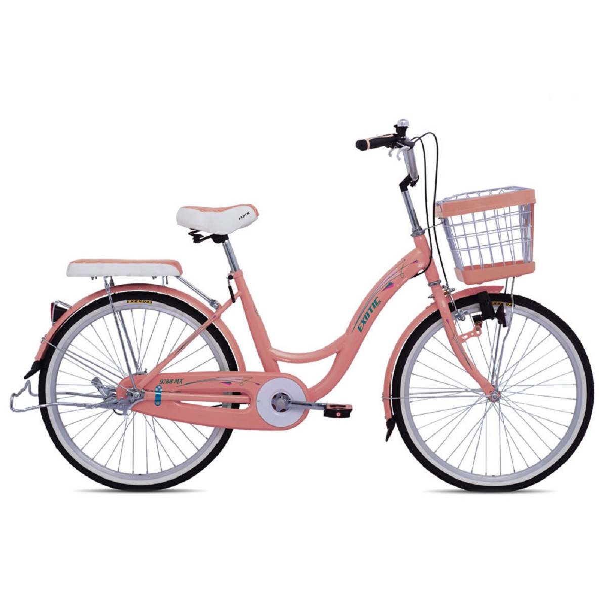Sepeda Mini Exotic 9788 MX Pipa Satu 24 Inchi memiliki ragam warna yang menarik. Warna orange yang segar, warna cream yang kalem, dan warna abu-abu untuk yang low profile. Sepeda ini didesain dengan baik menggunakan material HiTen Steel yang kuat. Cocok digunakan untuk remaja dan dewasa. Sepeda ini merupakan seri terbaik dari Exotic Series untuk tipe sepeda keranjang remaja dan dewasa.